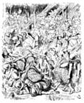 She thought that in all her life she had never seen soldiers so uncertain on their feet: they were always tripping over something or other, and whenever one went down, several more always fell over him, so that the ground was soon covered with little heaps of men.