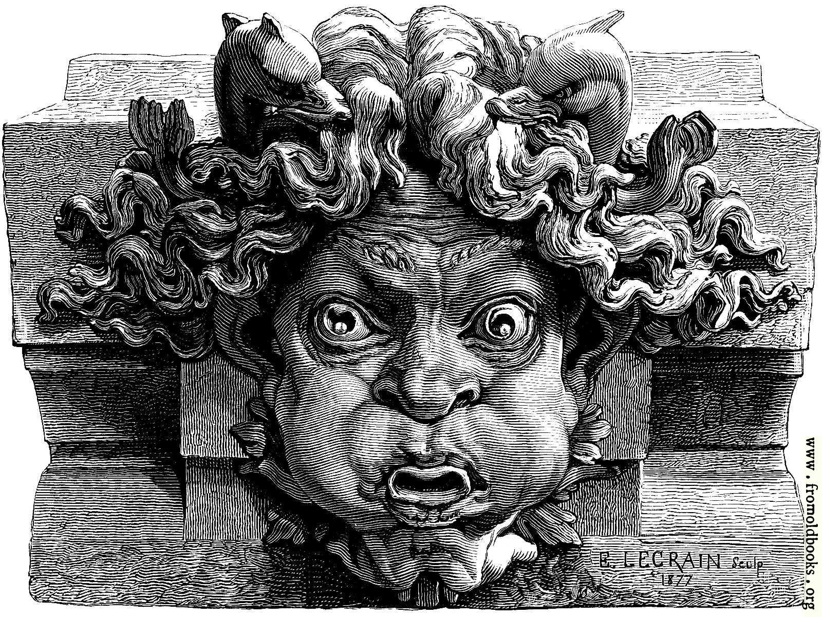 These masks, modelled by M. Legrain, were among the most amusing examples of the sculptor’s art in the exhibition, and the one we have selected for our present illustration was perhaps the best of the series.