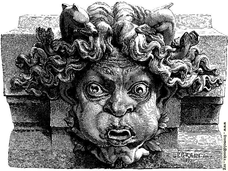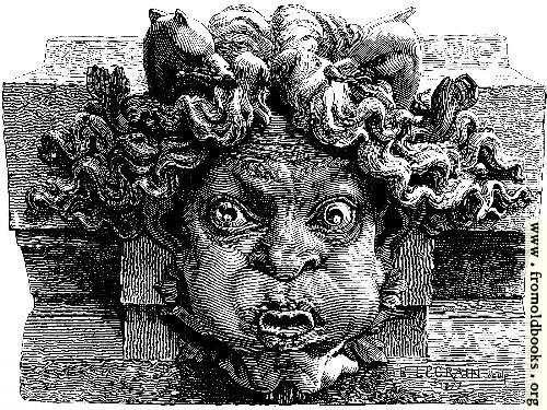 “There is something intensely laughable in the head which forms the subject of our present observations. The eager earnestness with which our friend is engaged in contributing his quotum to fill the grand basin, the inflated cheeks, the puckered lips, and the staring eyes are full of character, and there is a passionate energy in the way he is performing his allotted task which cannot fail to impress even the most casual observer.” (p. 256)