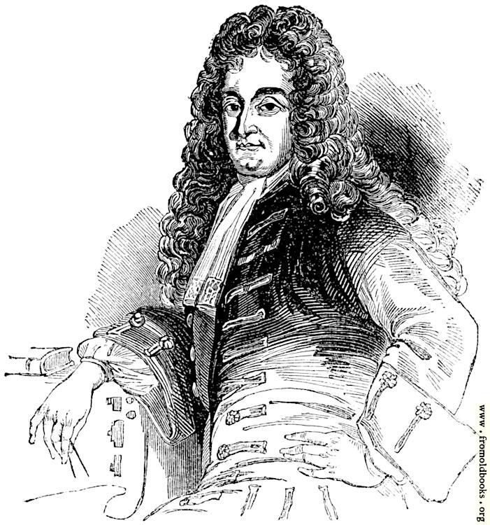 This black and white engraving appears to be based on the 1711 “Kit-cat” of “Kit-kat” portrait in oils of Sir Christopher Wren by Godfrey Kneller; these portraits show the upper half of the subject, including the hands. The name Kit-cat derives from the Kit-Cat Club of Richmond, London: the ceiling wasn’t high enough for full-length portraits, so Kneller invented half-height ones.