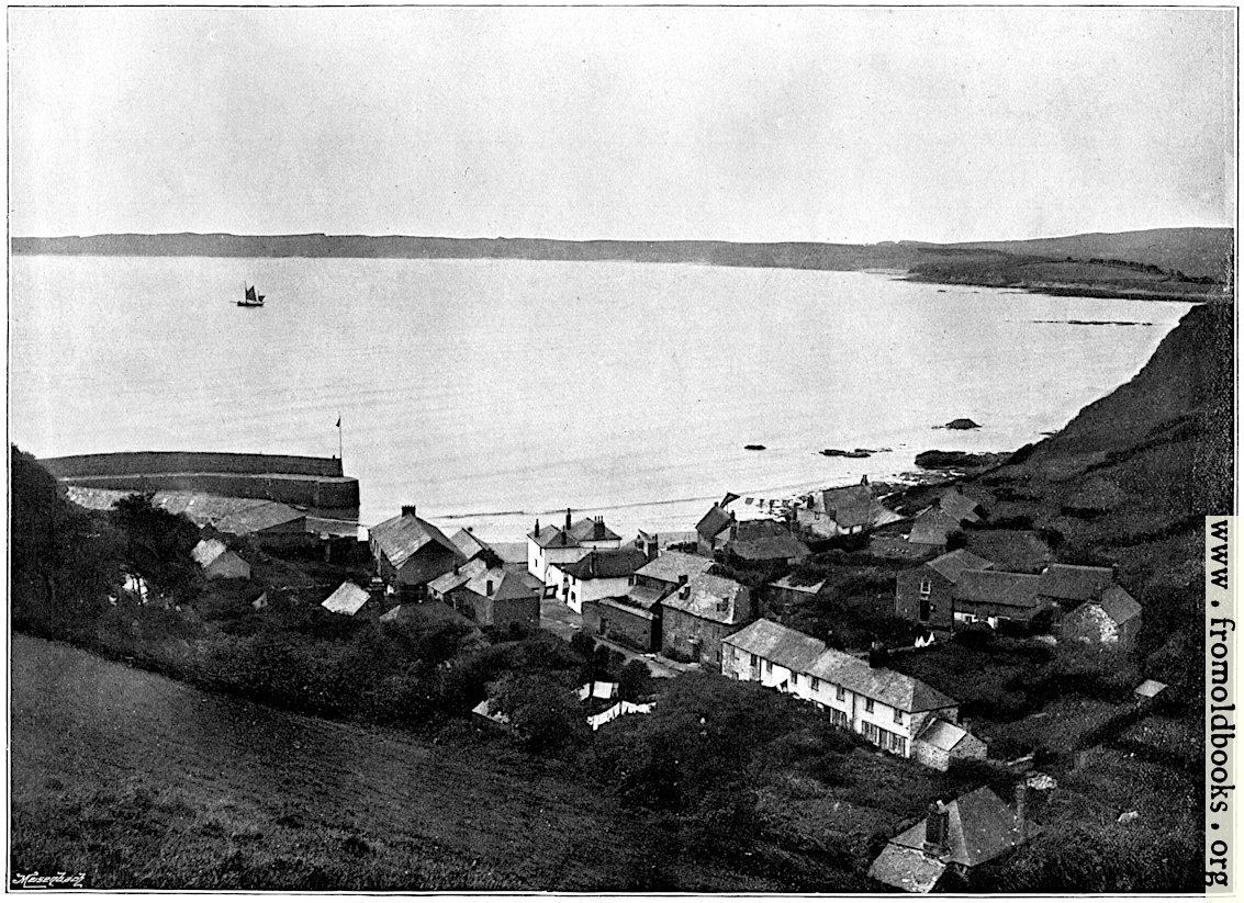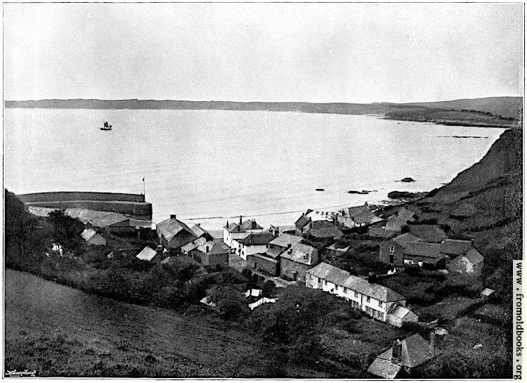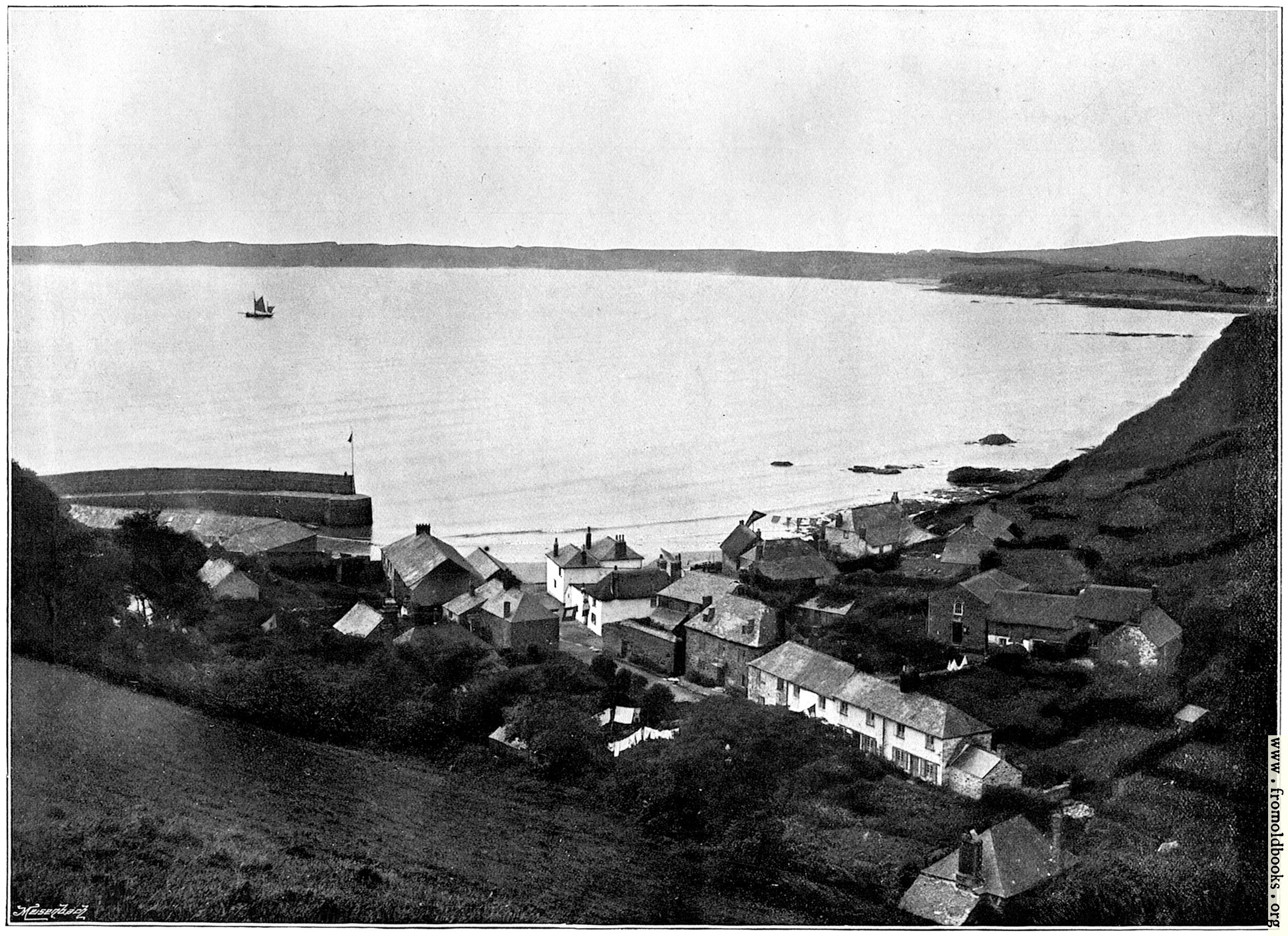 POLKERRIS.—This is a wild and beautiful fishing cove and village near Fowey. As a matter of fact, the picturesque environs of Fowey are by no means so well known to tourists as they should be; if they were, there cannot be the least doubt that this part of Cornwall would receive an amazing influx of admiring visitors from all parts of the kingdom. Among other interesting excursions to be made from Fowey may be mentioned those to the Carclaze Tin Mine, near St. Austell; the Valley of Carmears; the Treffry Viaduct, and the Harbour of Par, near St. Blazey. Then, again, there are Polruan, on the shore opposite Fowey; and Menabilly, the beautiful seat of the Rashleighs, celebrated for its grotto and unrivalled collection of minerals. Menabilly is perched upon the promontory of the Greber Head, about two miles to the west of Fowey. While here one may proceed by road to the eastern entrance of the Park in order to visit the Longstone, an interesting monument of the Brito-Roman era. Before quitting Menabilly the stranger should certainly visit the Grotto erected near the sea-shore. This is constructed in the form of an octagon with the finest marbles and serpentine, interspersed with crystals, shells, and pebbles. To the north of the Park at Menabilly lies the beautiful little village depicted in the above view. No one in search of absolute repose and entire change could do better than penetrate to this remote Cornish fishing village. We say penetrate advisedly, for it is by no means easy of access from the great towns and centres of industry. It is, however, essentially one of those delightful little spots that well repay the trouble of a tiresome and expensive journey. (p. 231)