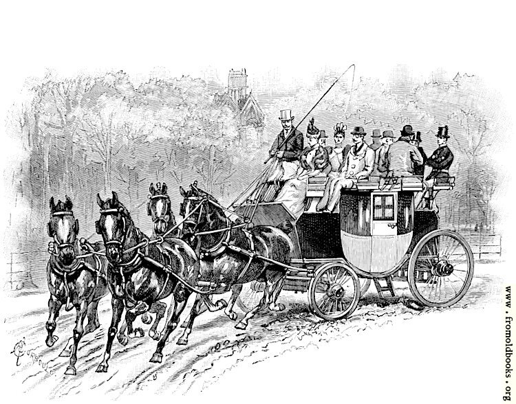 Spend half an hour at Hyde Park Corner and notice the number of ways in which it is possible for man to drive. The difference may be slight between any two drivers, but among the hundreds what a wide range there is of character and skill! Good carriages are many, good horses not so many, and good drivers much fewer. Many men who know what they are talking about, tell us that our carriages are driven worse than they ever were, comparatively speaking; that is to say, the good drivers have not increased in proportion to the number of vehicles. (p. 437)
